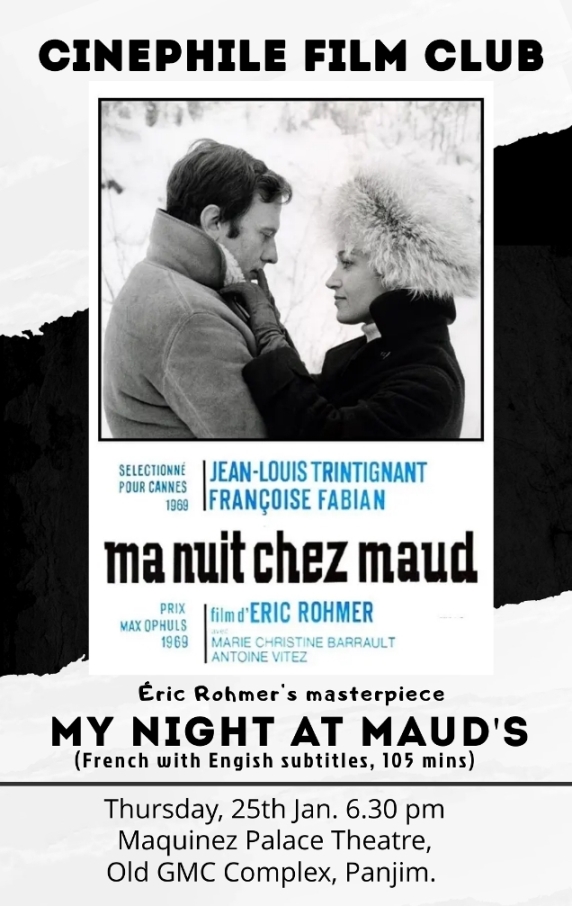 Screening of the French Film “My Night at Maud’s (1969, 105 mins)” at the Cinephile Film Club on 25th Jan 2024…